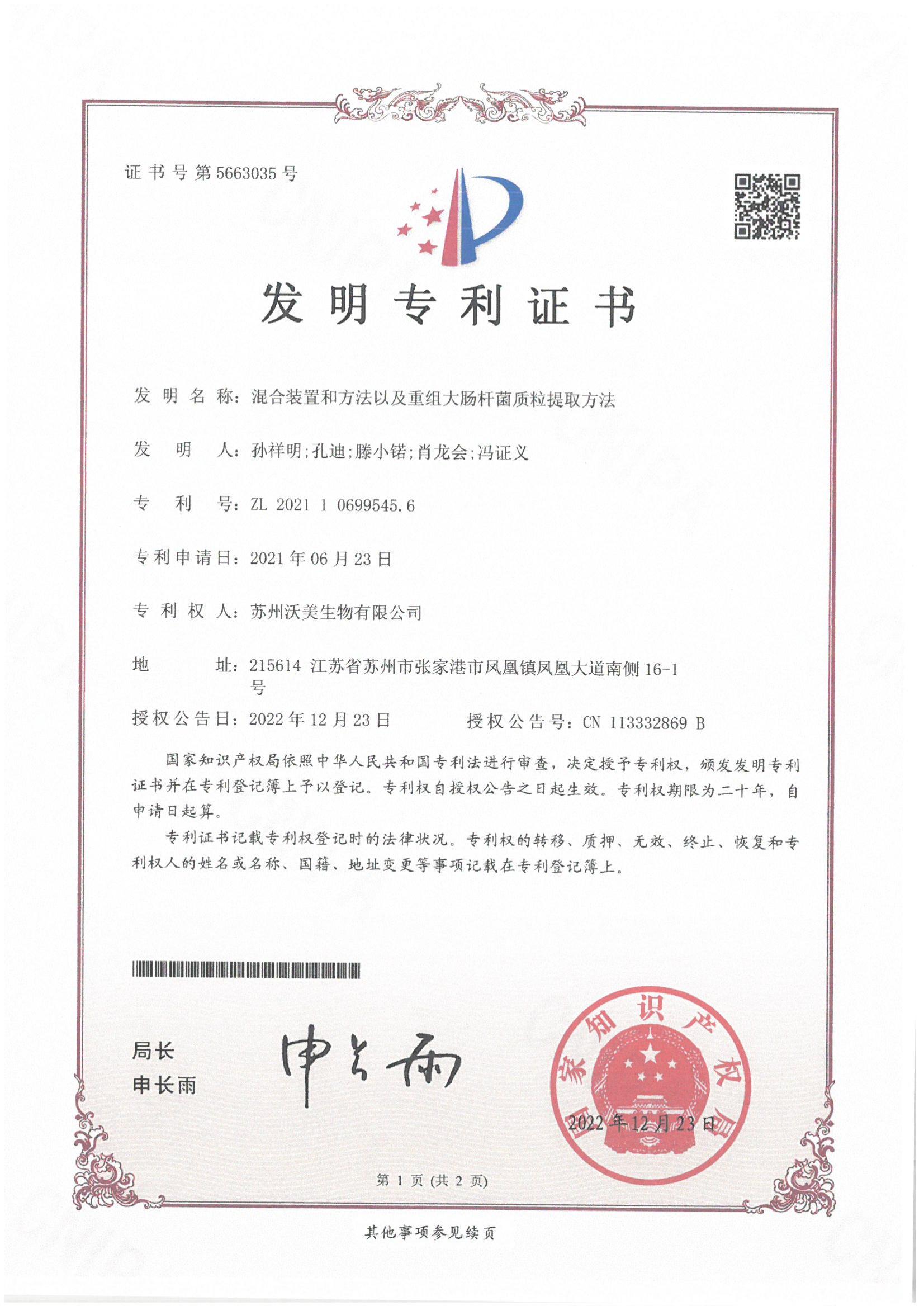 公司自主研發(fā)適用于生產(chǎn)工藝的改進和臨床試驗的多種專利