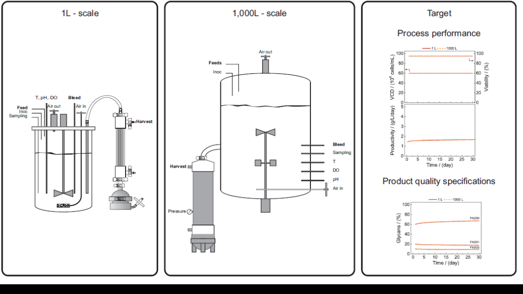 本文將討論灌流生物反應(yīng)器從幾升的實驗室規(guī)模放大到數(shù)千升的臨床和商業(yè)規(guī)模的挑戰(zhàn)。我們考慮實驗室和大型反應(yīng)器系統(tǒng)之間的比較研究,包括多相反應(yīng)器模型和計算流體動力學工具以及組學研究,以支持可靠且穩(wěn)健的放大過程。此外,將討論具體的規(guī)模放大問題 - 例如細胞截留裝置長期操作的可放大性以及工藝失敗情況下的批次定義。最后,我們將評估一次性技術(shù)的潛力,并以生物生產(chǎn)未來發(fā)展背景下的經(jīng)濟、財務(wù)和環(huán)境考慮作為本文的結(jié)尾